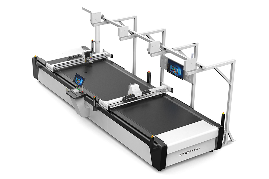 设备优势:高频振动刀片切割,切割不焦边、不黑边、无烟无味,支持自动上下料,真皮皮类制品支持智能提取轮廓及识别瑕疵,配备自动排版系统,对比人工排版可节省15%的材料费